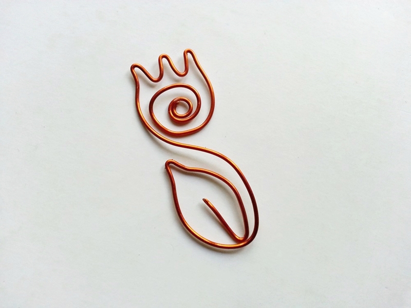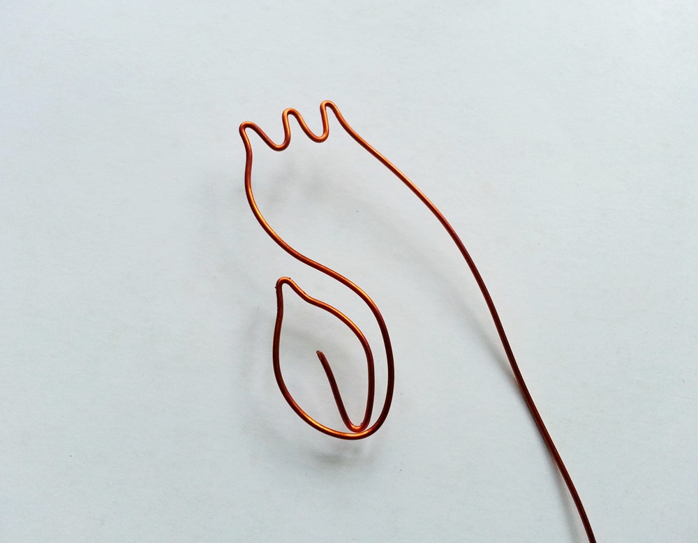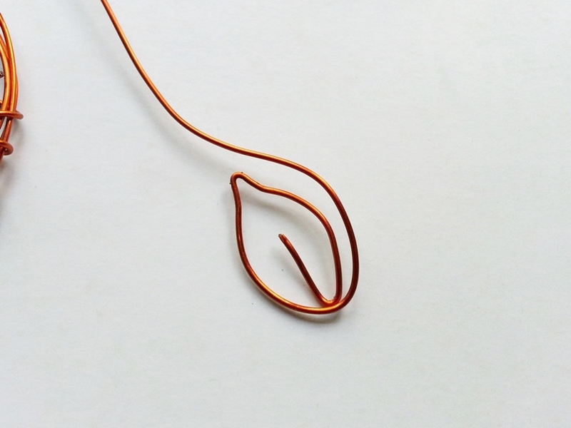 Flip the wiring pattern to the other side, after making the leaf bend the wire upwards again to create the stem.