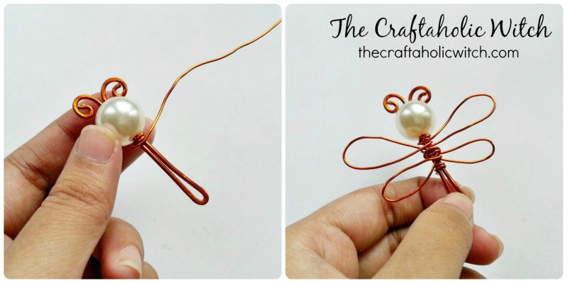 Once you’re done making the 2nd layer of wings coil the remaining wire randomly around the body part of the dragonfly.