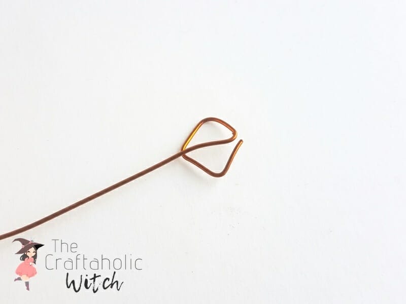 Now take the craft wire but do not cut it from the bundle. Bend the wire 4 times in the same direction to create a square pattern; the size of the square should be smaller than the diameter of the tissue paper roll. Bend the current wire (last bent part) diagonally inside the square pattern.