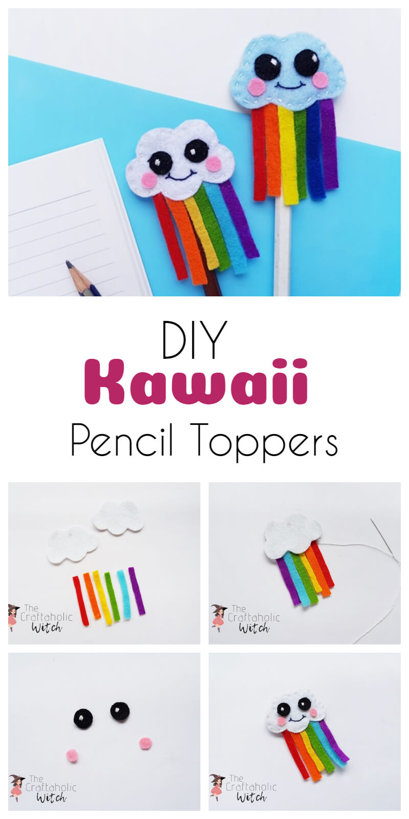 Hello there! Haven’t been posting regularly for the last 2 months! But hoping to post regularly from now so I thought of starting the week with a cute, easy and fun craft project! What could be cuter than Kawaii pencil toppers! right? When I came up with this cloud and rainbow pencil topper idea I instantly thought of a Kawaii pattern and here it is!