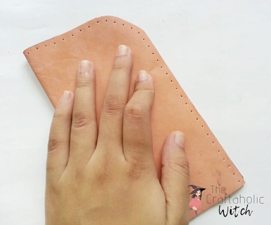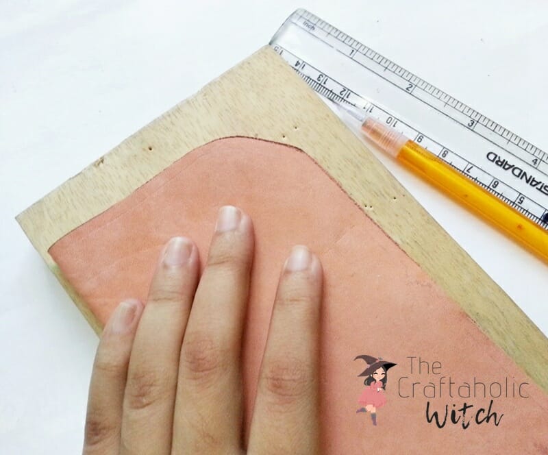 Cut out the traced leather piece. Fold the leather cutout into half width wise. Cut round corners on any one of the open sides of the half fold leather.
