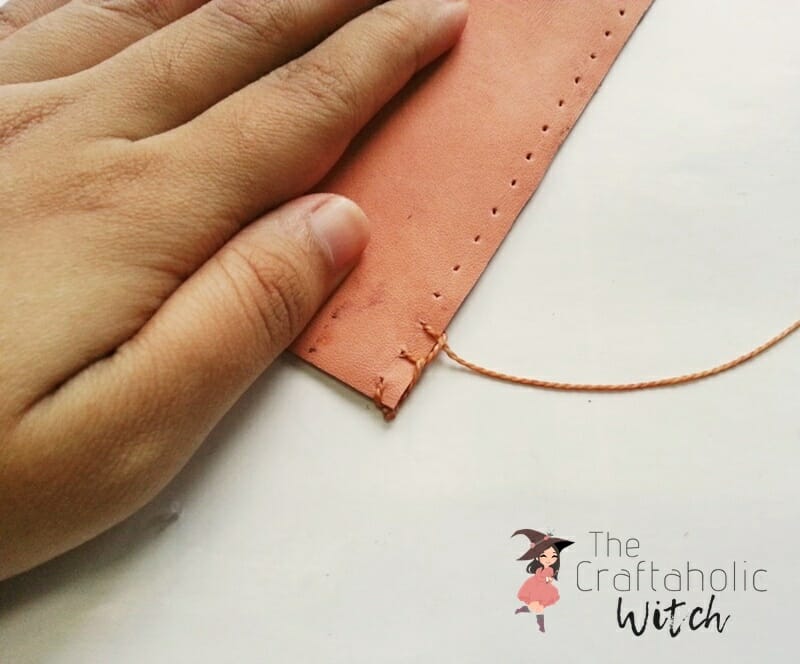 Stitch all the way to the other end, making sure to go through each hole while stitching. Keep the stitches neat and even as much as possible.