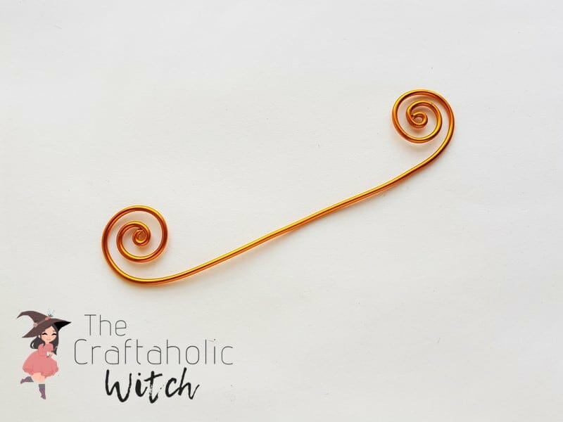 After creating the twirl patterns on both ends of the wire, measure the middle point of the twirled wire. Bend the wire at that point and bringing the twirl patterns towards each other.