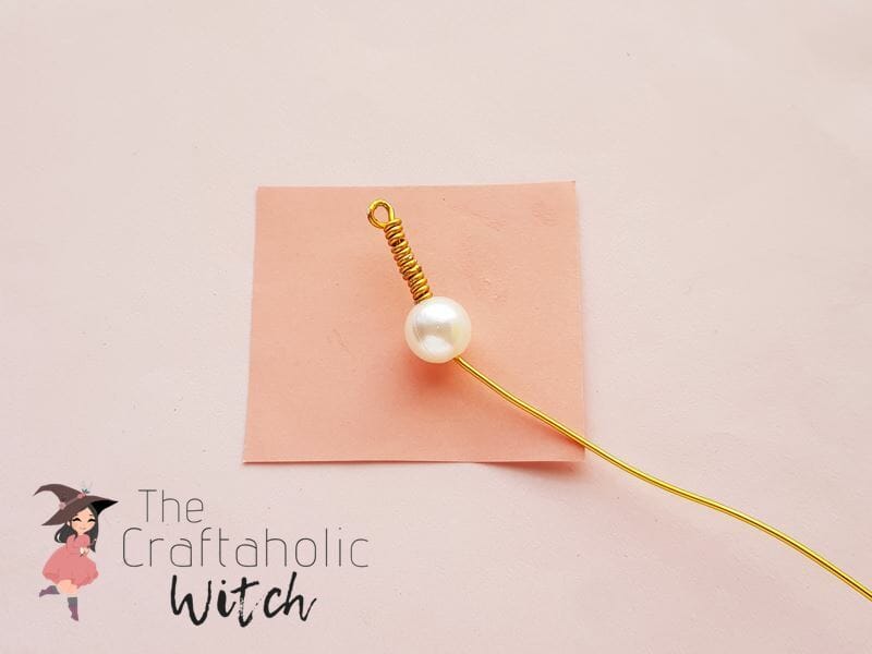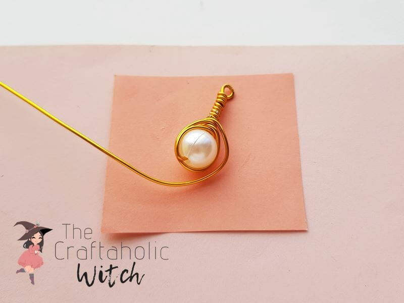 Repeat the previous steps of wire wrapping until the wire reaches an inch or half at its open end. The wire should remain on the top side of the bead, right below the loop that we created in step 2.
