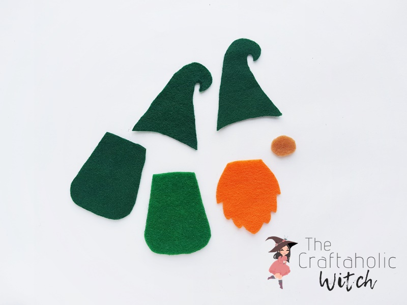 Download and print out this Gnome Template. The template includes 2 hat patterns, 2 clothing patterns, 1 beard, 1 nose, and 6 circles. Cut out the patterns from the template before heading towards how to make a gnome tutorial.