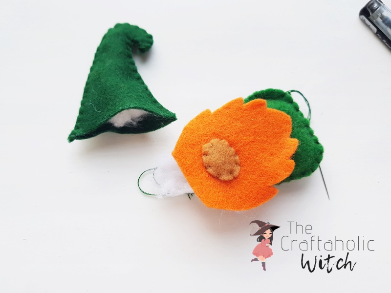 Use cotton to stuff the felt ha and the felt gnome pattern. Stuff enough cotton until the plush looks nice and fluffy.