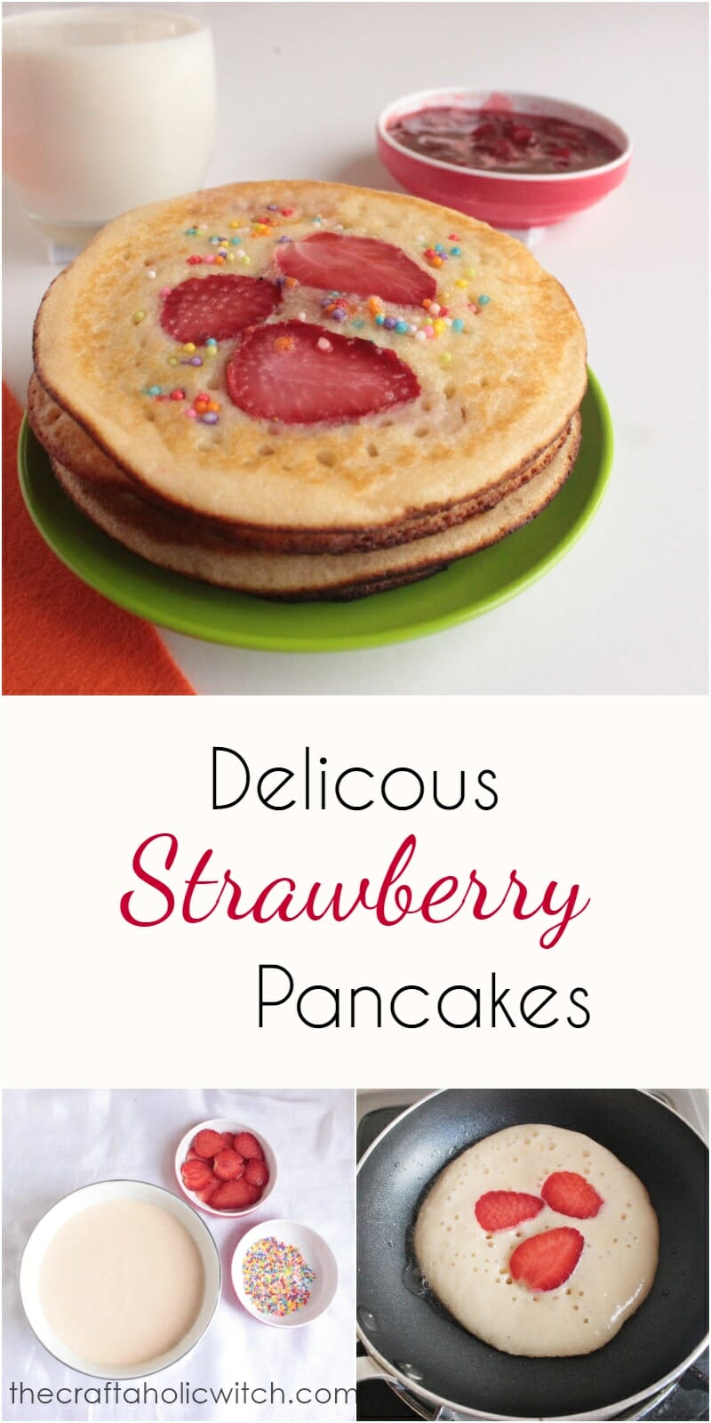 The ingredients include the basic pancake ingredients. I added some colorful food sprinkles to add some fun to the texture. Kids will definitely love these. Check out the instructions and give it a try. I will post the strawberry syrup recipe very soon 😀