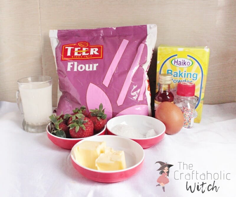 In a bowl add wet ingredients – 1 cup of milk, 1 egg, 1 tsp of strawberry essence and 2 tbsp of melted butter. Mix them really well. Keep aside for now.